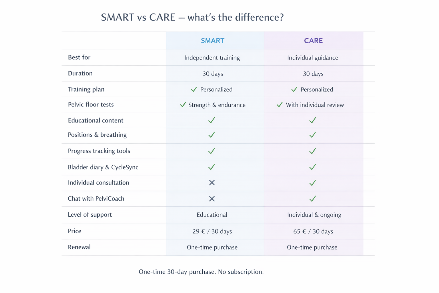 - a personalized pelvic floor training plan for 1 month
