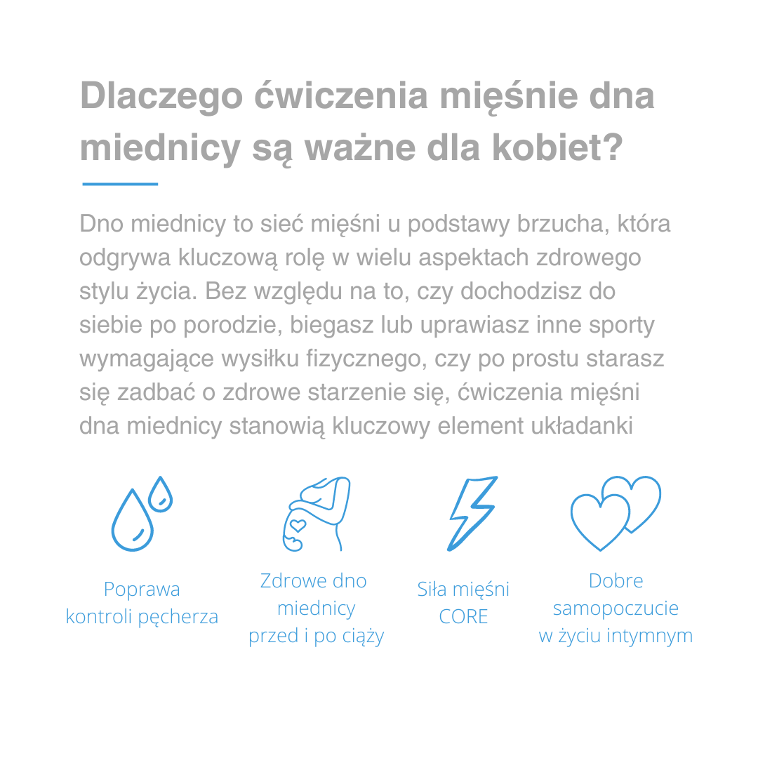Wibracyjny i wizualny biofeedback pozwala pewnie zaangażować dno miednicy.