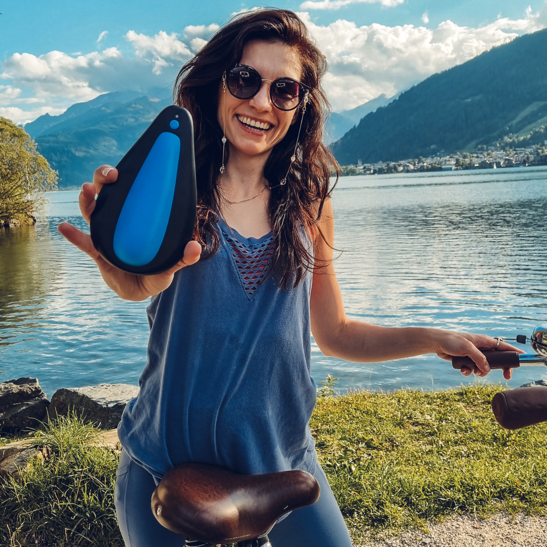 Sit on it like it’s a bike seat, with your perineum on top of the Soft Air Pillow. Most people find that having the button pointing backwards works best but either orientation (button in the front or the back) can work.
